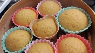 焼けたら型のまま逆さまにして冷ます。完全に冷めてから型から外してください。